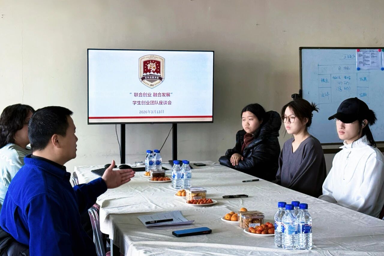 为推动学生创业从“意向萌芽”向“实质孵化”加速转变,近日,吉林动画学院举办“联合创业 融合发展”学生创业团队座谈会。此次活动是继学校3月6日举办2026年首场“联合创业 融合发展”校园行宣讲会后,推动创业扶持工作走深走实的关键举措。活动紧扣国家级创新创业学院建设主线与创业大学构建核心目标,基于11大产业体系,由创新创业学院、校缘产业公司与意向学生开展深度座谈,精准对接合作意向、厘清合作细节,切实打通学生创业需求与产业资源的匹配链路,全力孵化优质学生创业团队。